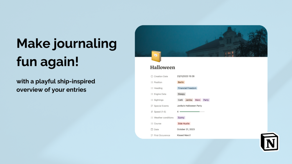 With this Notion Template, you'll have a beautiful and inspiring space that will make sticking to journaling a breeze because it's just fun, feeling like a captain in your ship cabin!