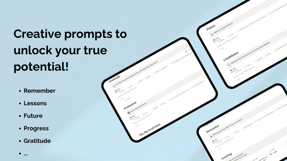 I made this template because I believe that journaling is one of the most powerful tools for overall success in life – but most journals only use 20% of that potential, because it all comes down to the quality of the prompts and how well it is structured.