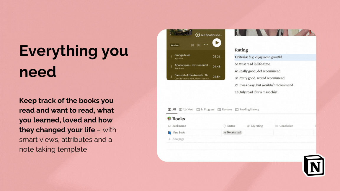 Drowning in your to-read list? Forgetting what you've learned? Transform your reading life from scattered to spectacular with this thoughtfully designed Notion template. Track your books, capture insights, and actually remember what you read – all in one beautiful space. From smart prioritization to effortless note-taking, everything you need to make reading more meaningful.